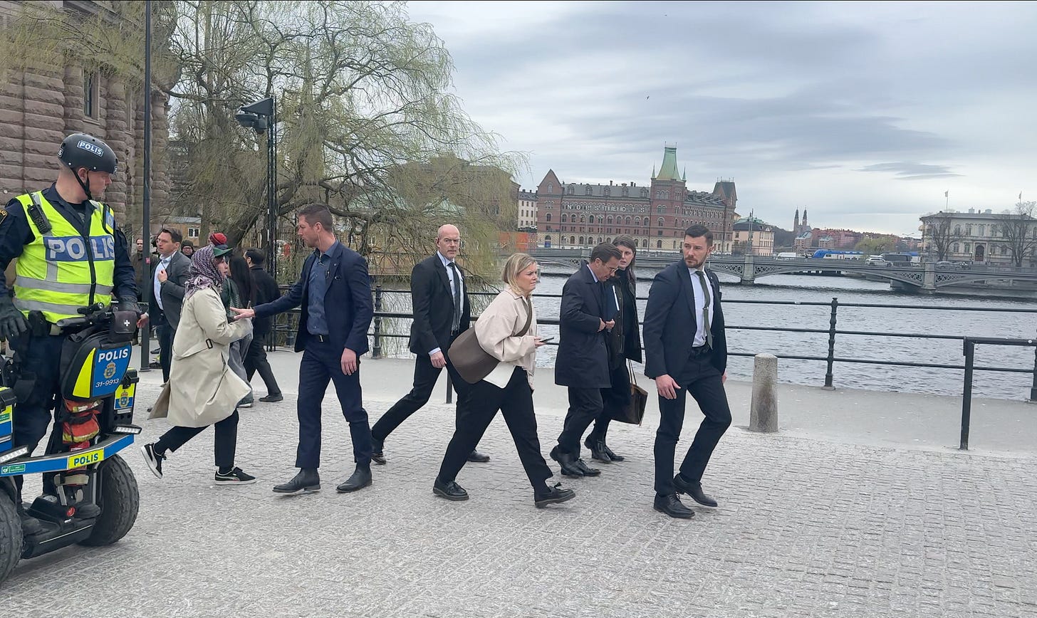 Hur länge ska dessa uppenbara säkerhetsrisker få attackera och trakassera politiker utanför deras arbetsplats? Att kriminella och våldsbenägna extremister tillåts komma så här nära Sveriges statsminister är ett rejält underbetyg och dessutom direkt pinsamt för Sveriges anseende.