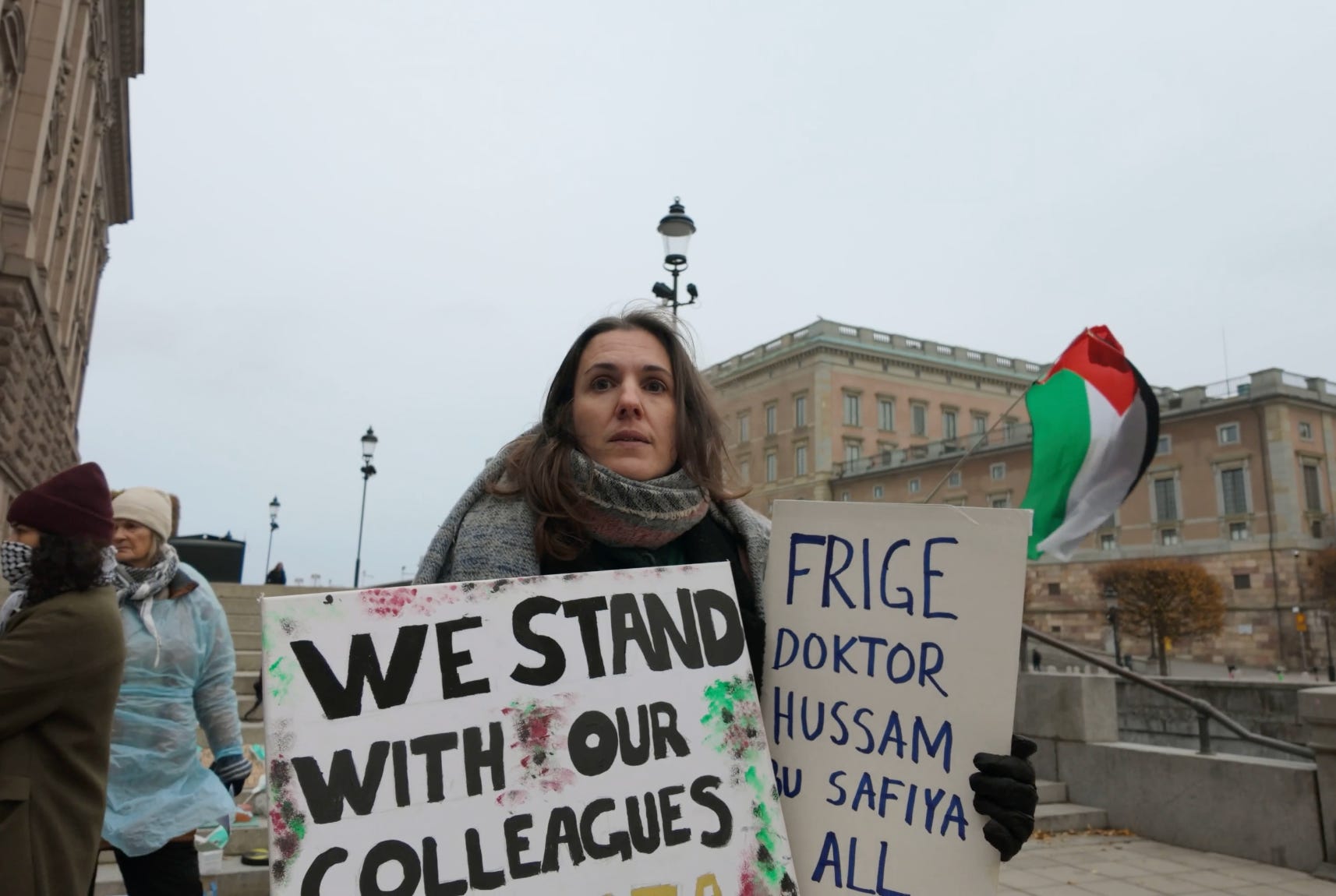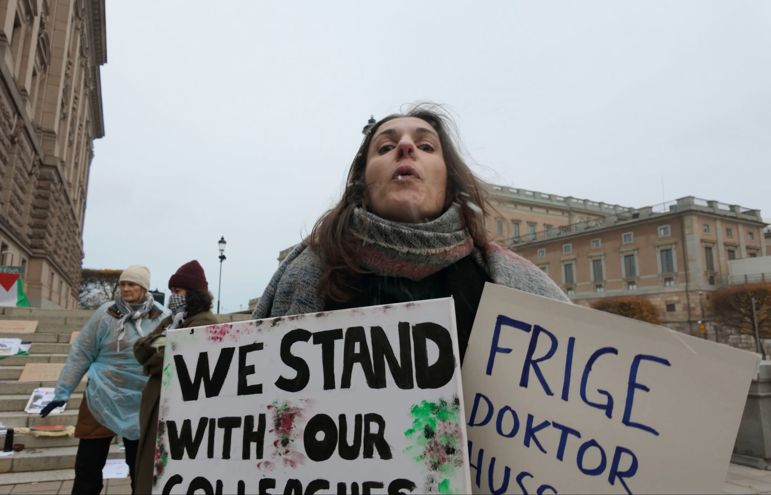 Den spottande demonstranten som nu är åtalad för ofredande visade sig vara arbetsterapeuten och vänsteraktivisten Clara Bosque Wiberg. Hon har bland annat skrivit en debattartikel i den vänsterextrema propagandatidningen Dagens ETC fylld med konspirationsteorier om att Tidöregeringen monterar ned demokratin.