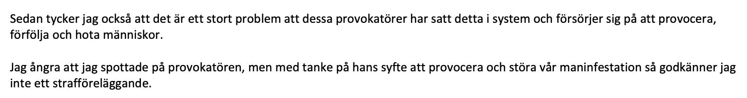 I november publicerade jag en video som visade hur en vänsterdemonstrant utanför riksdagen spottade på mig under tiden som jag filmade. Videon visade även hur jag fick tjata på polisen att identifiera kvinnan vilket de till slut gjorde. I februari kom beskedet om att en åklagare beslutat att väcka åtal.