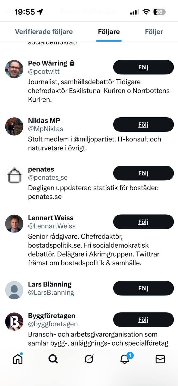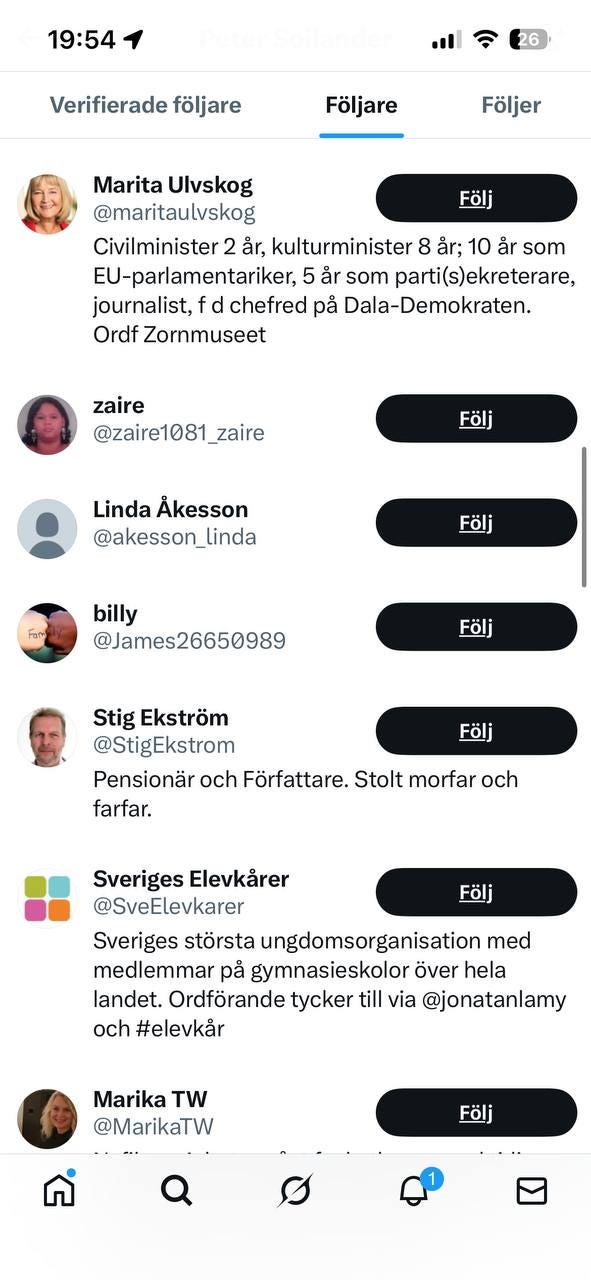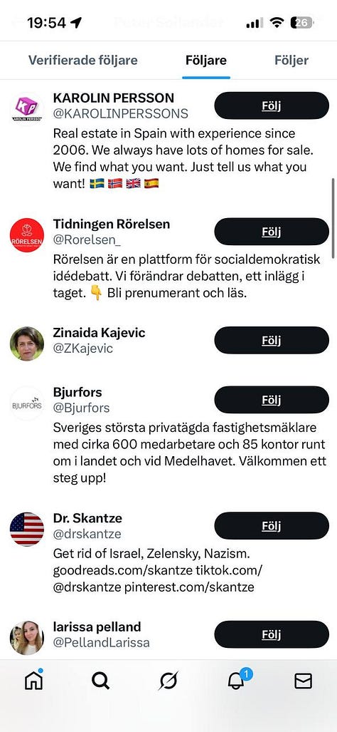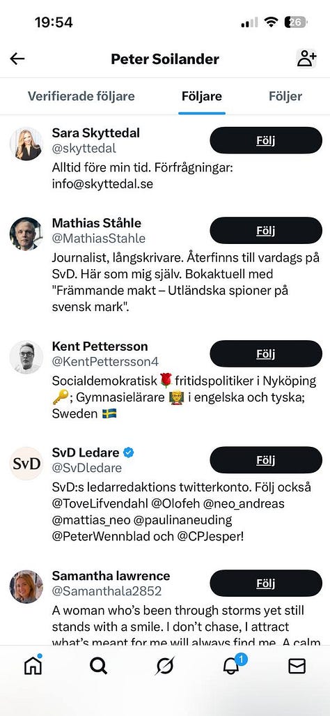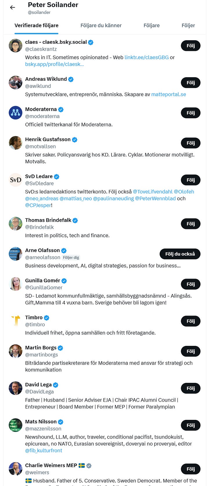 Några av de som följer Soilander än idag på hans Twitter/X-konto: