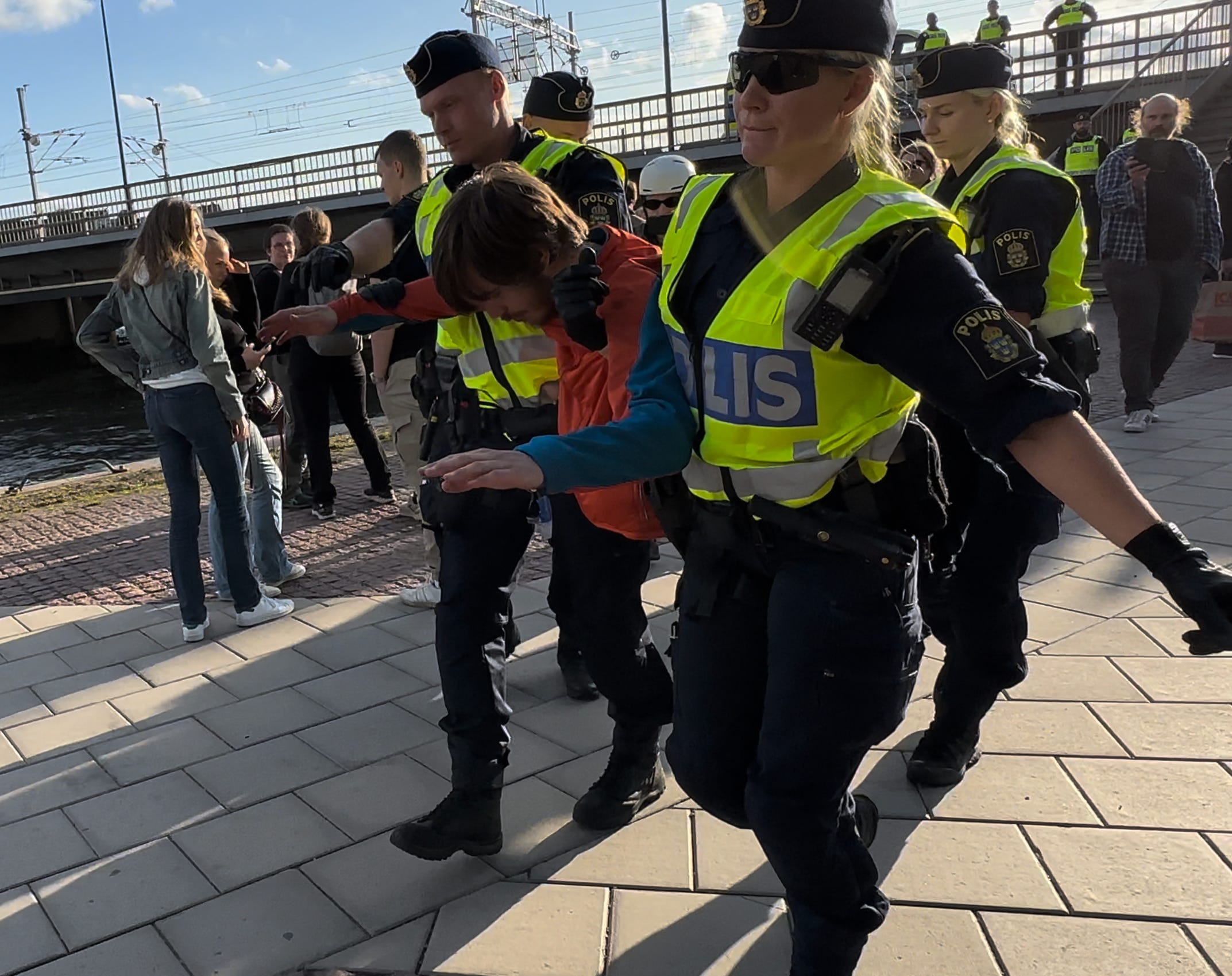 Rufus Rune har satt i system att inte lyssna på polis när han blir tillrättavisad för sitt ordningsstörande beteende, utan slänger sig istället på marken, som på bilderna nedan: