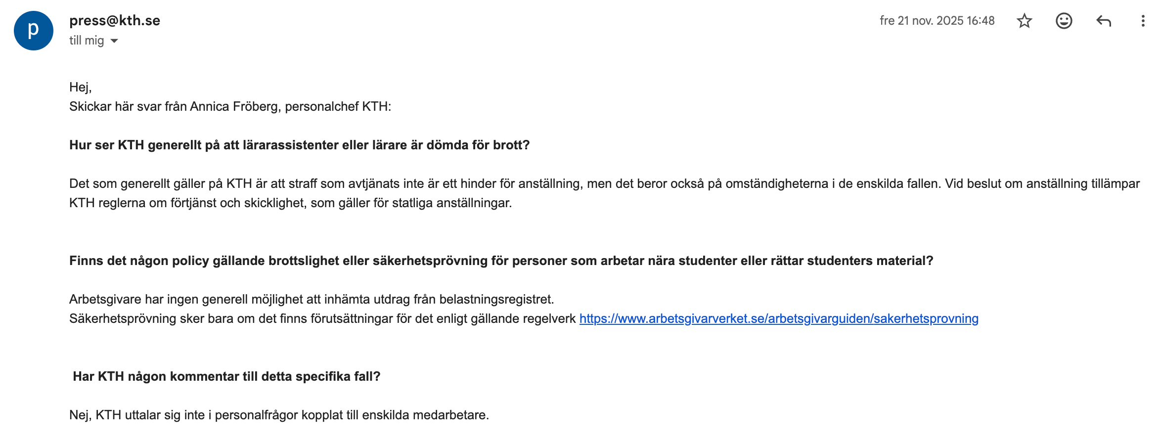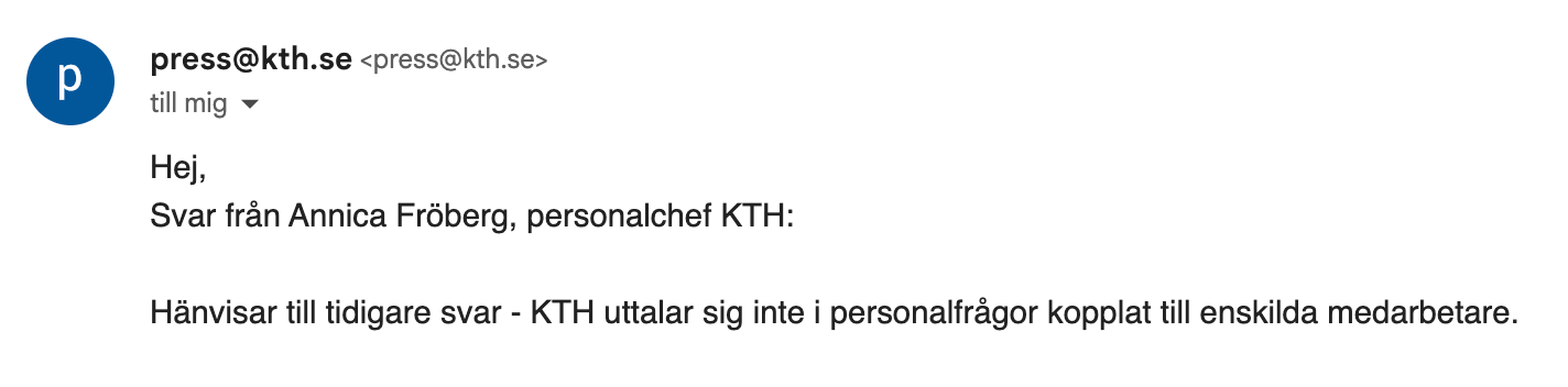 Kungliga Tekniska Högskolan svarar