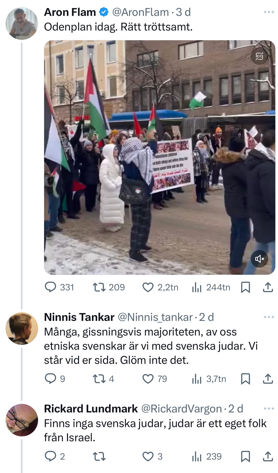 Som sagt är Rickard Lundmarks ideologiska röda tråd ganska oklar. Nedan följer en relativt bisarr tråd under ett av Aron Flams inlägg.