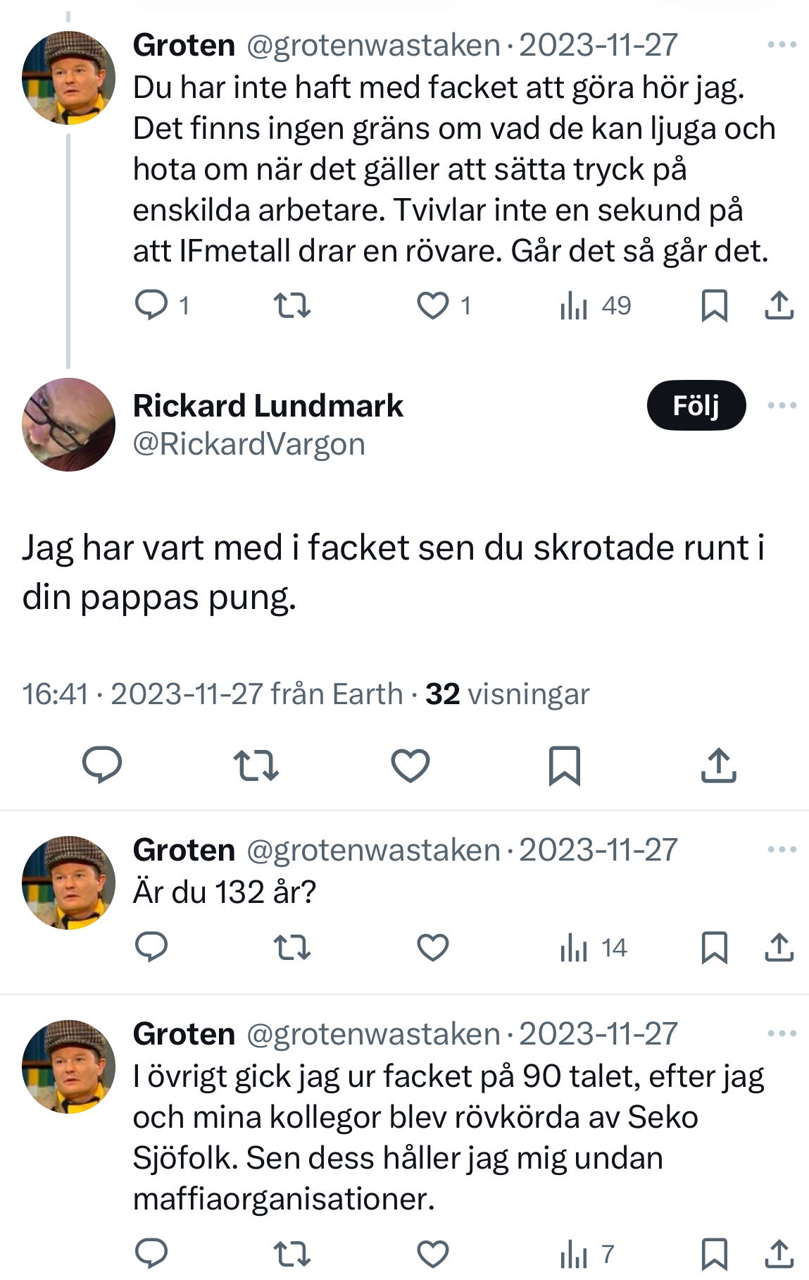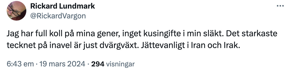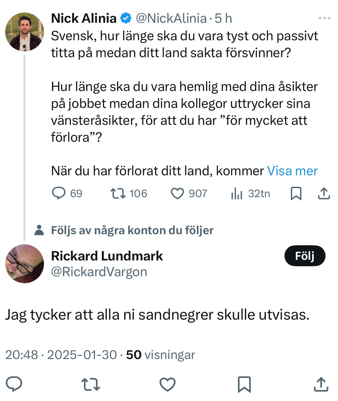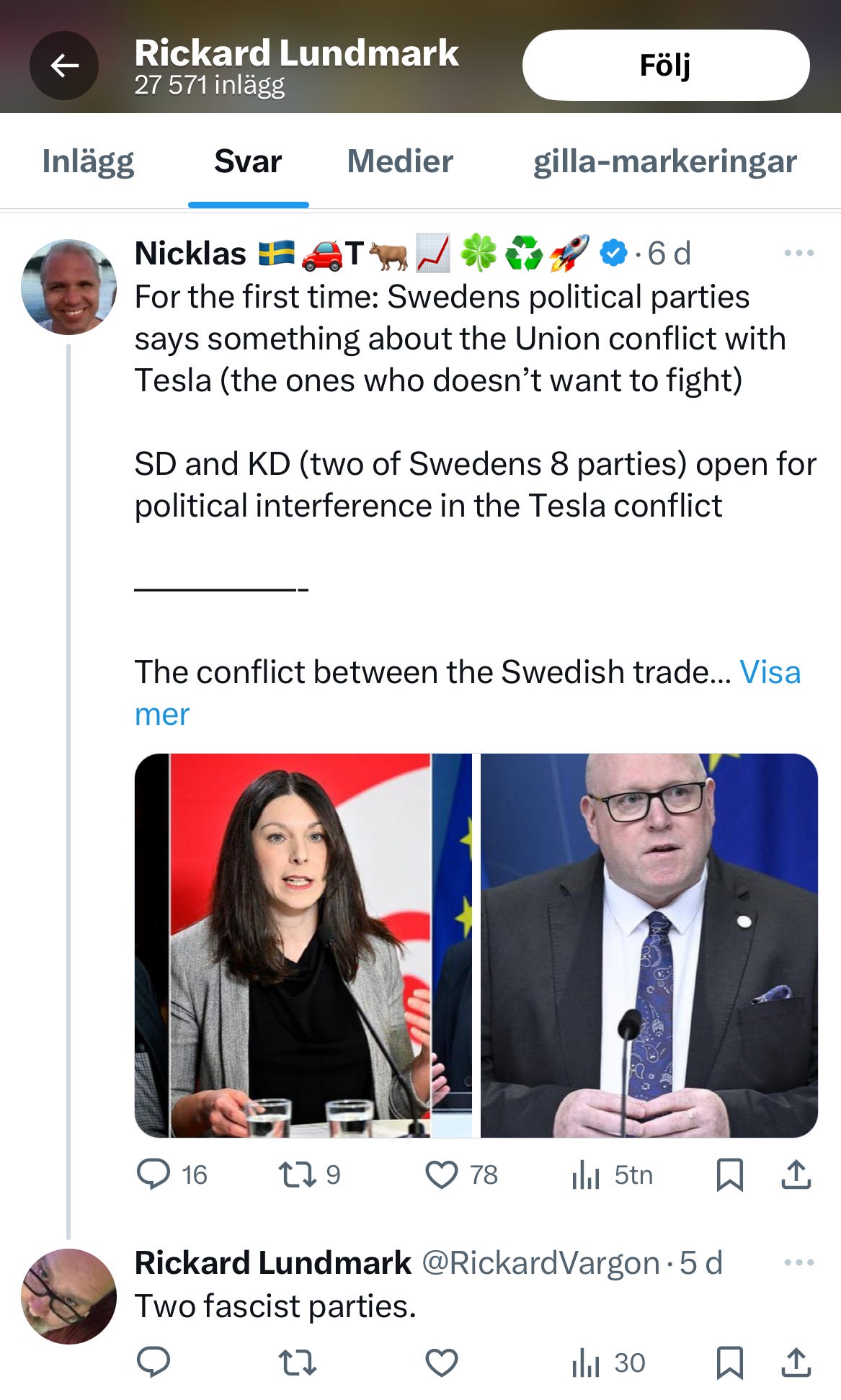Rickard Lundmarks X-konto, kontot RickardVargon, har under flera års tid betett sig som de mest urspårade av anonyma trollkonton som förekommer på plattformen X (tidigare Twitter). Men han har gjort det under eget namn, och med bild på sig själv.