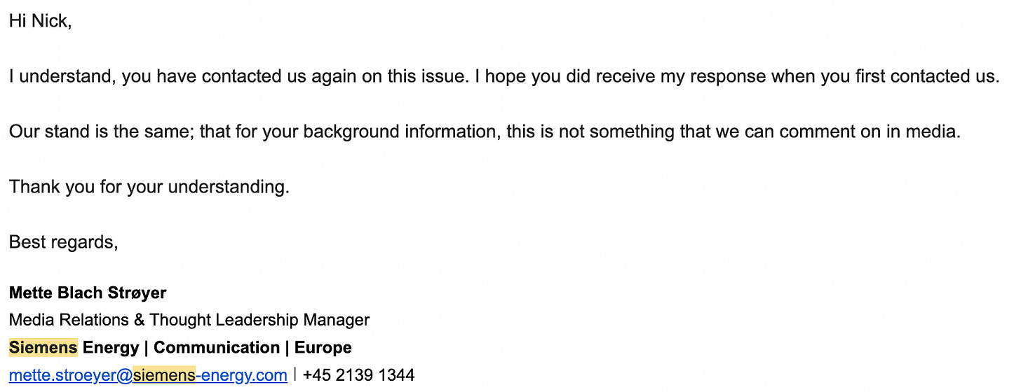 I vårt nästa samtal sa Joakim Sjögren att det från företaget tagits ett beslut att hänvisa till företagets “informationsavdelning”. Han hade dock inget namn eller nummer att hänvisa till. Sjögren vägrade därefter att kommentera något mer.